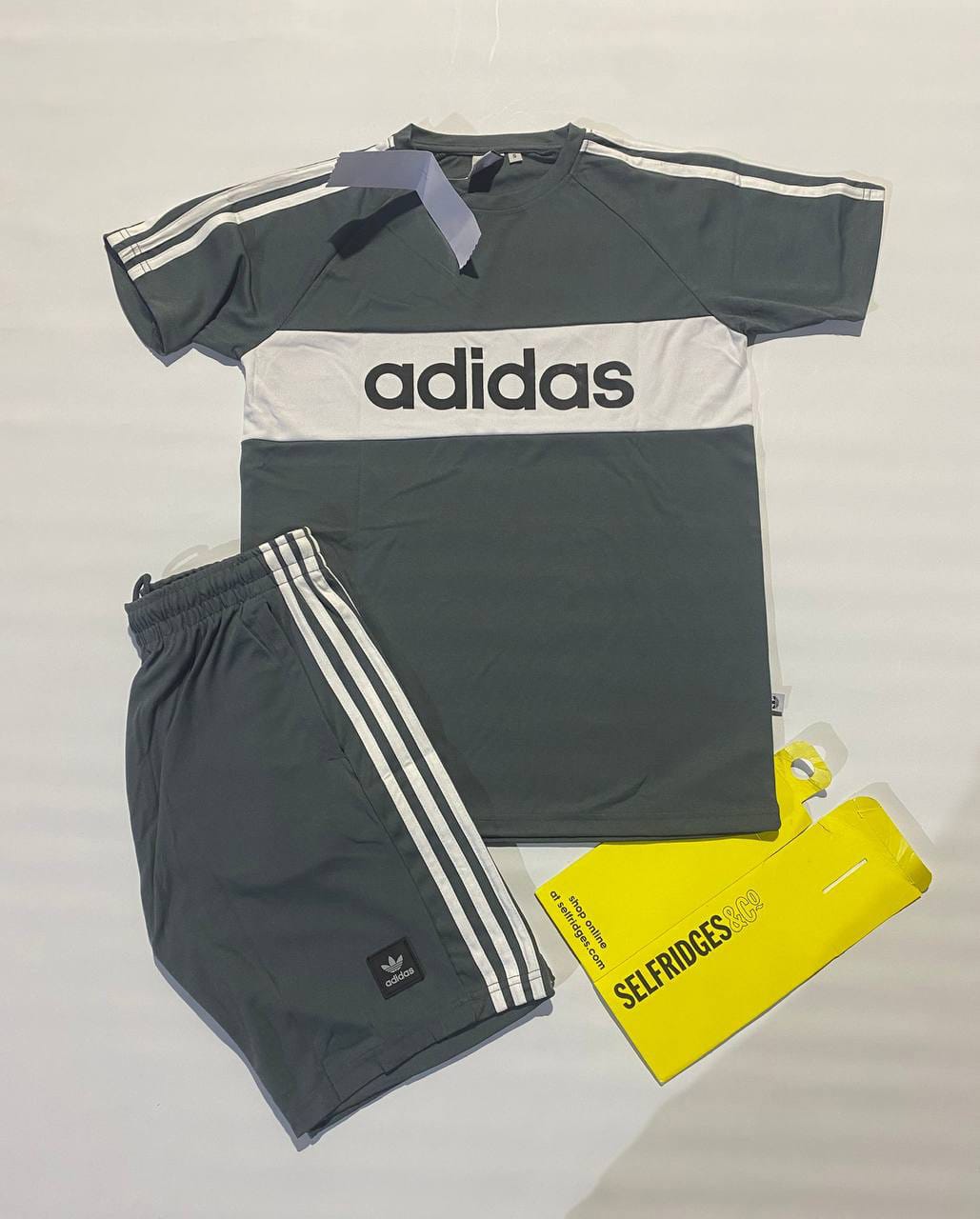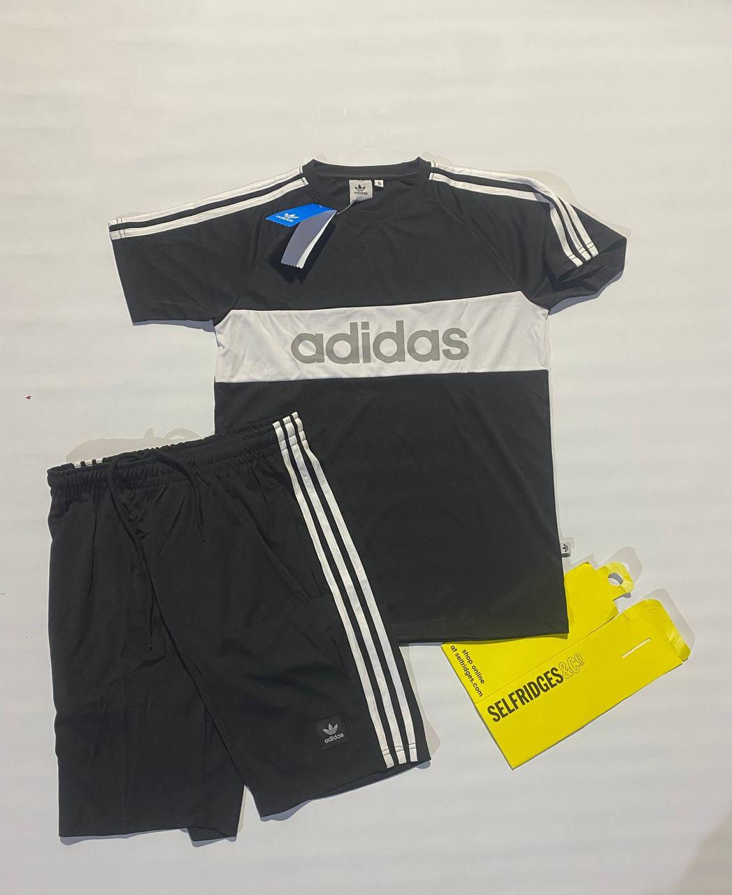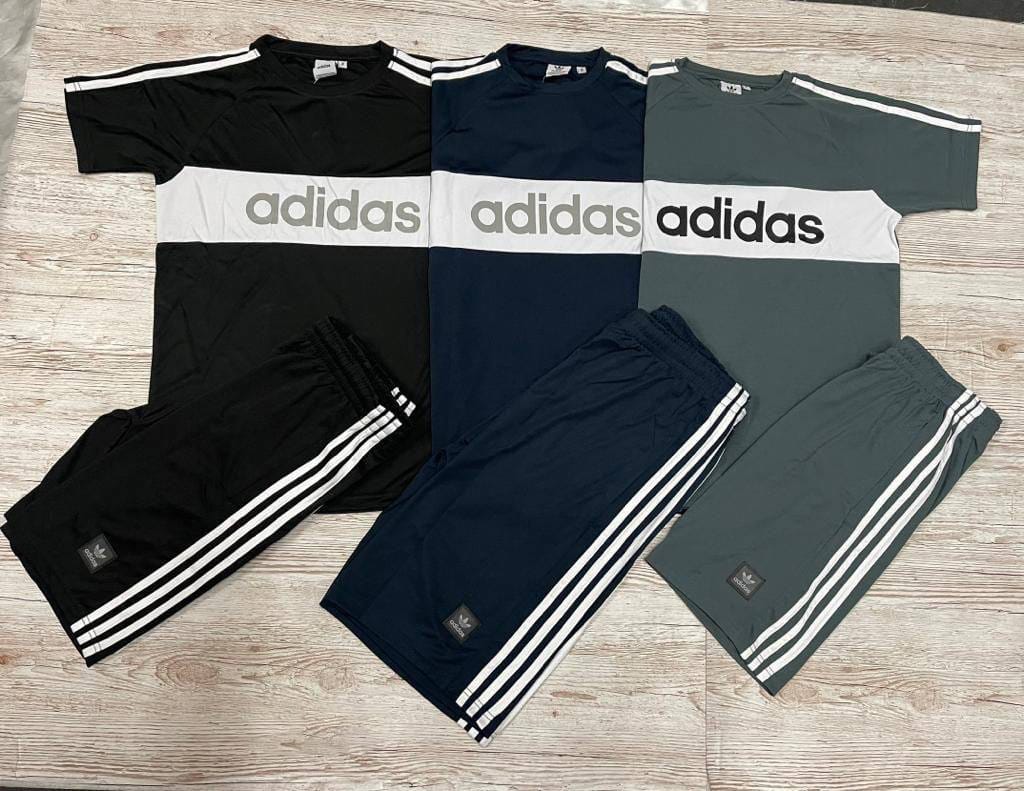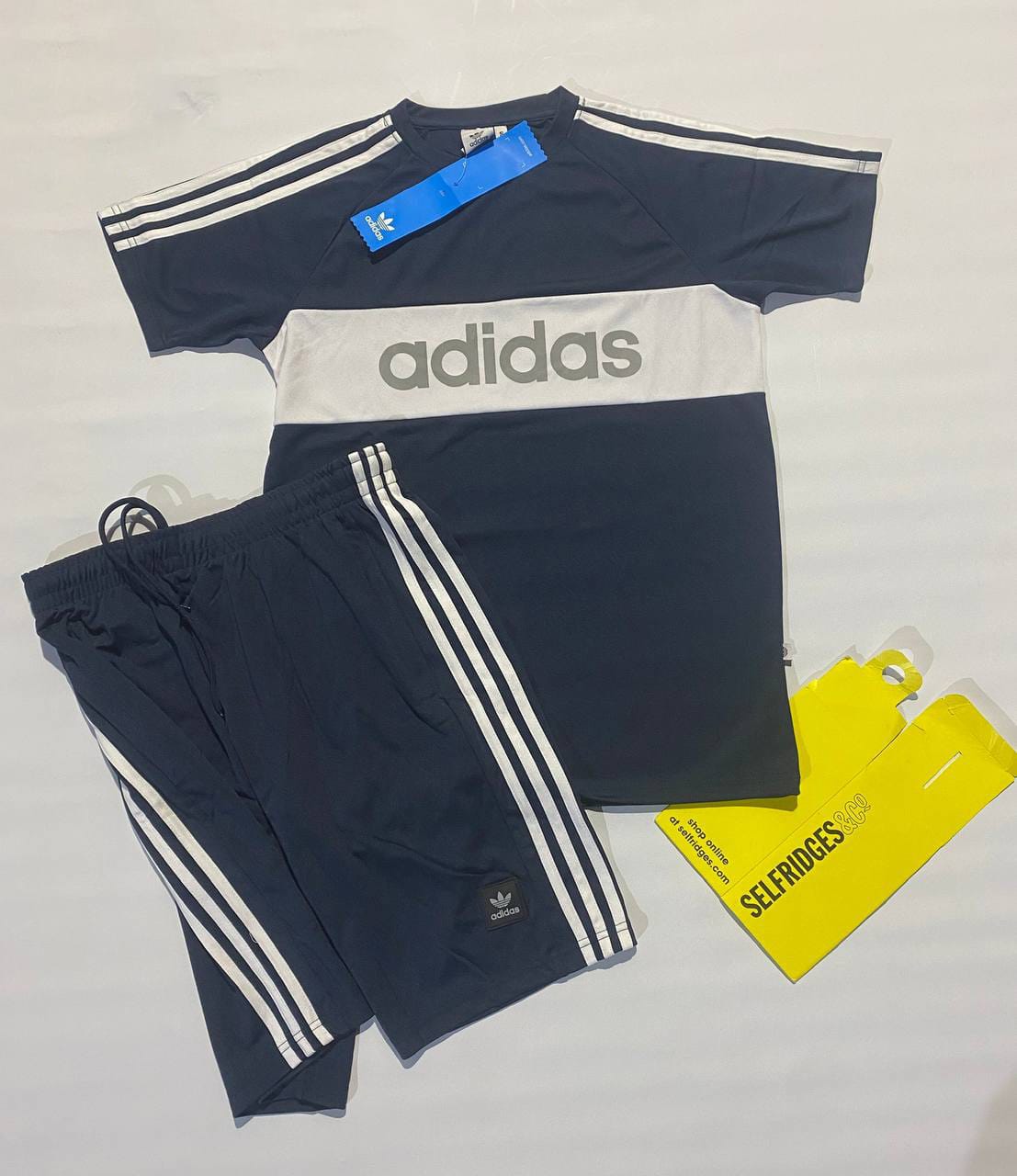 Adidas 3‑Stripes French Terry Shorts & T‑Shirt Set In Black Grey & Navy Blue Color