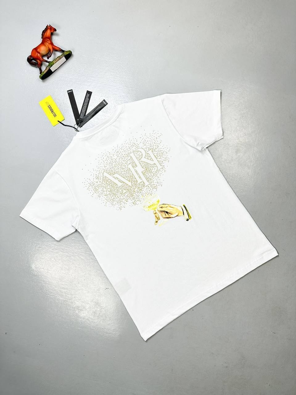 Amiri Champagne Men’s T-Shirt – Soft Cotton & Gold Graphic