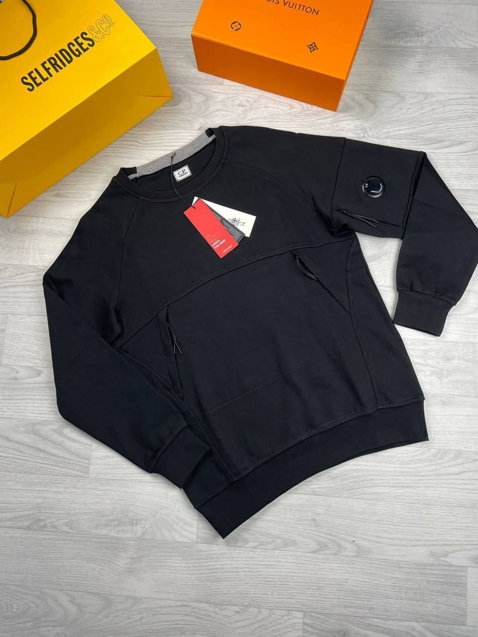 C.P. Company Lambswool Crewneck Jumper Zipped Pockets Jumpers In Black Colour