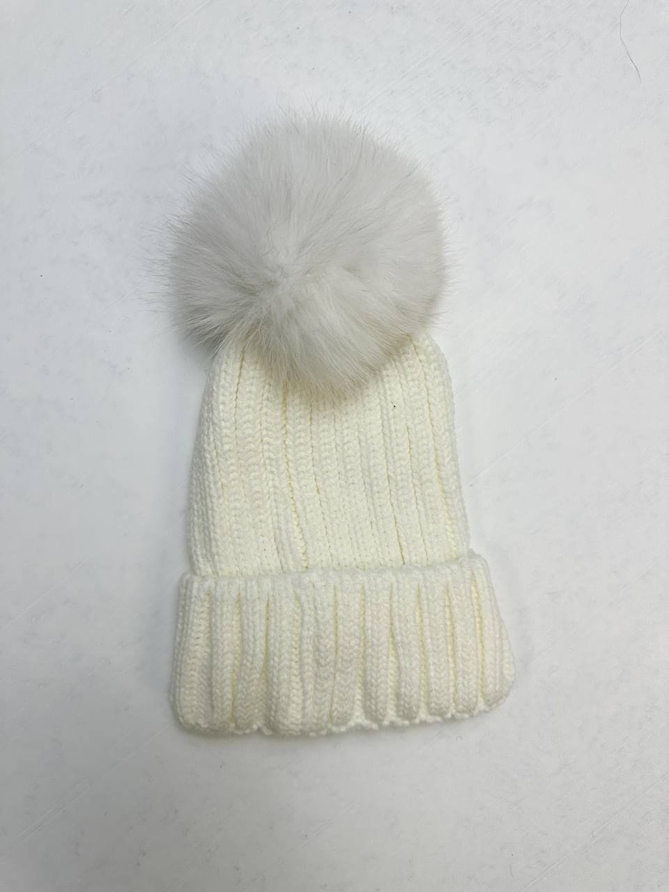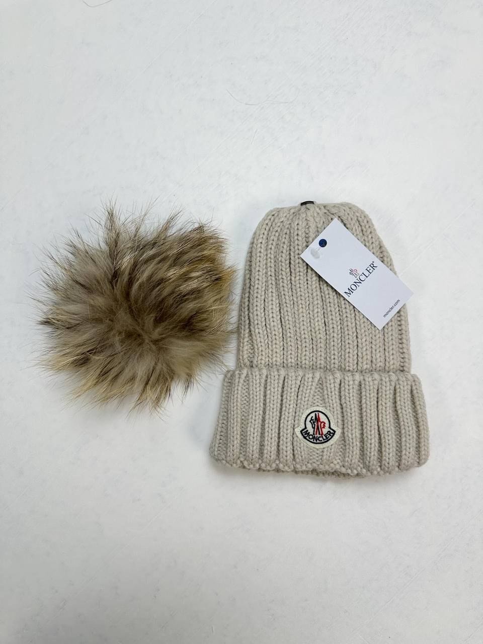 Moncler Enfant Wool Knit Beanie – Logo Patch & Faux Fur Pom-Pom
