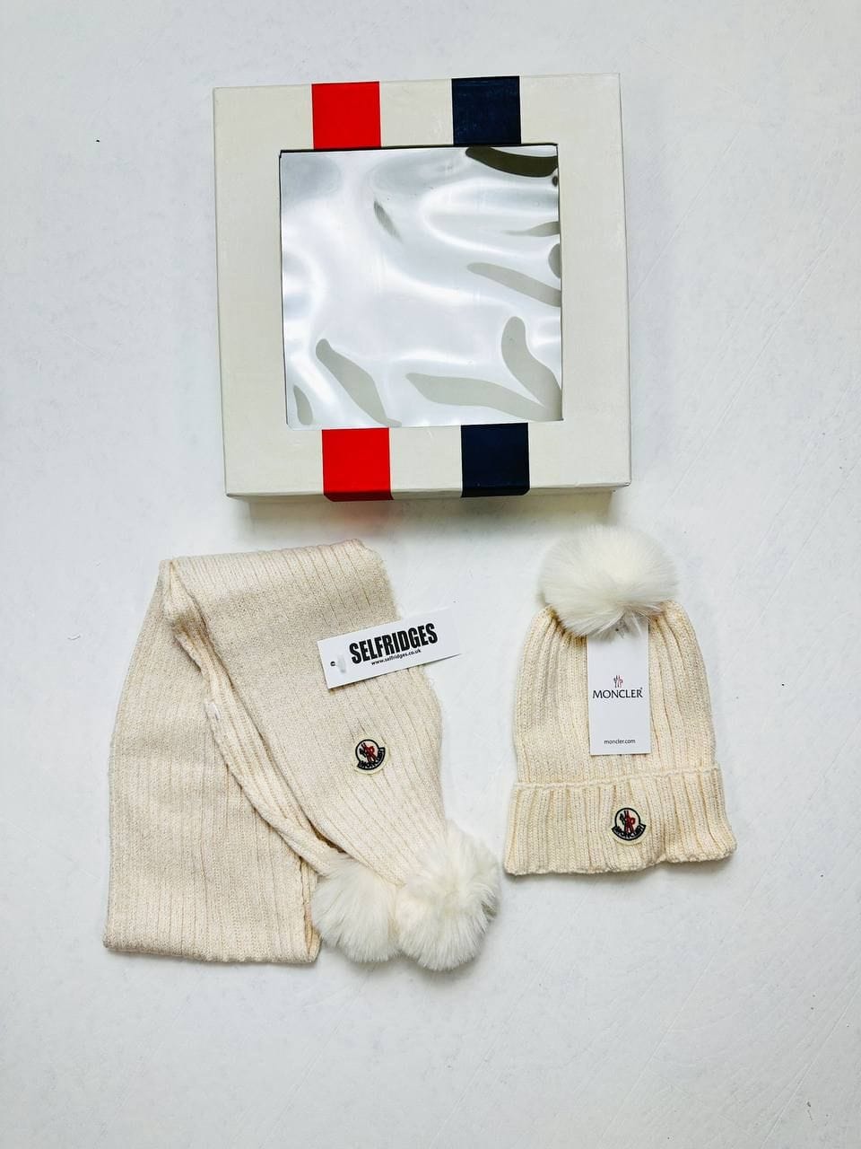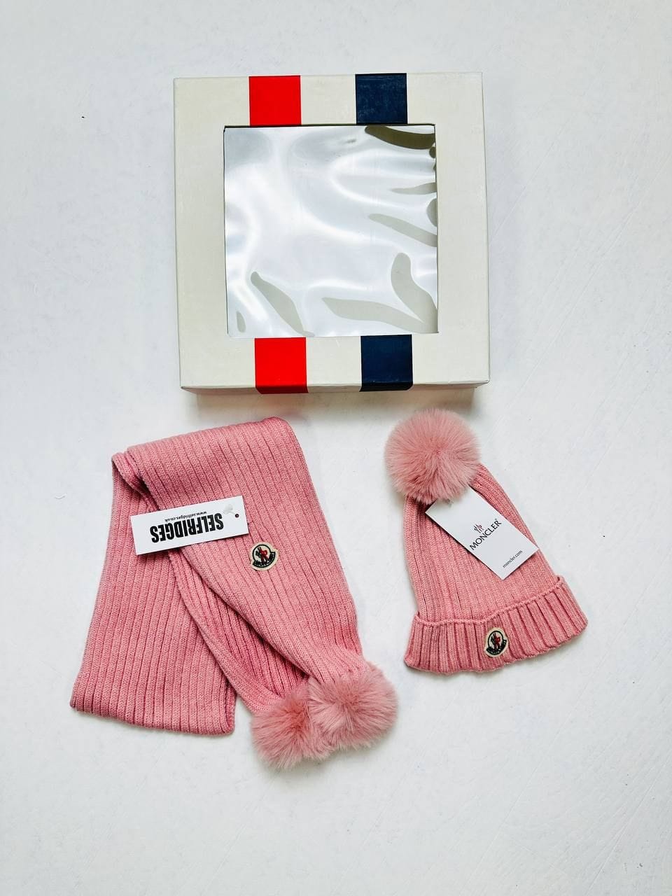 Moncler Ribbed Knit Hat & Scarf Set – Logo Patch Winter Style