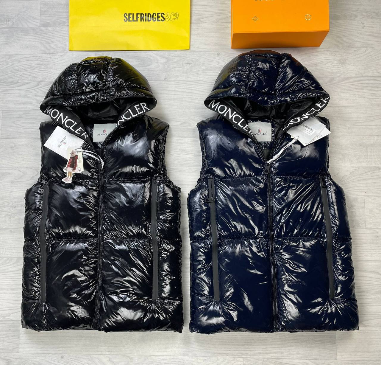 Moncler Sleeveless Puffer Hoodie Jacket – Zip Pocket & Bold Logo