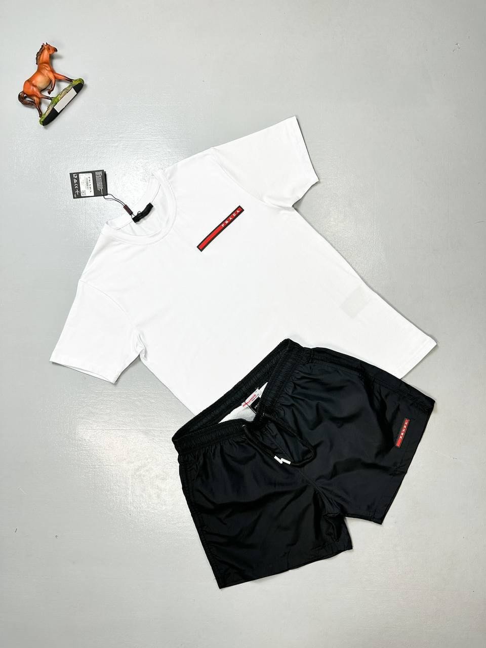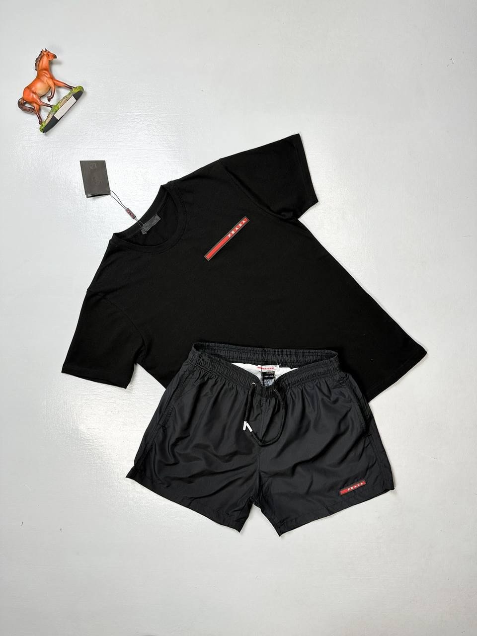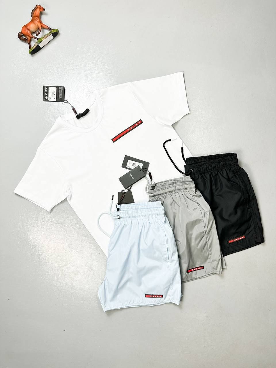 Prada Milano Logo Patch T-Shirt & Cargo Shorts Set for Men